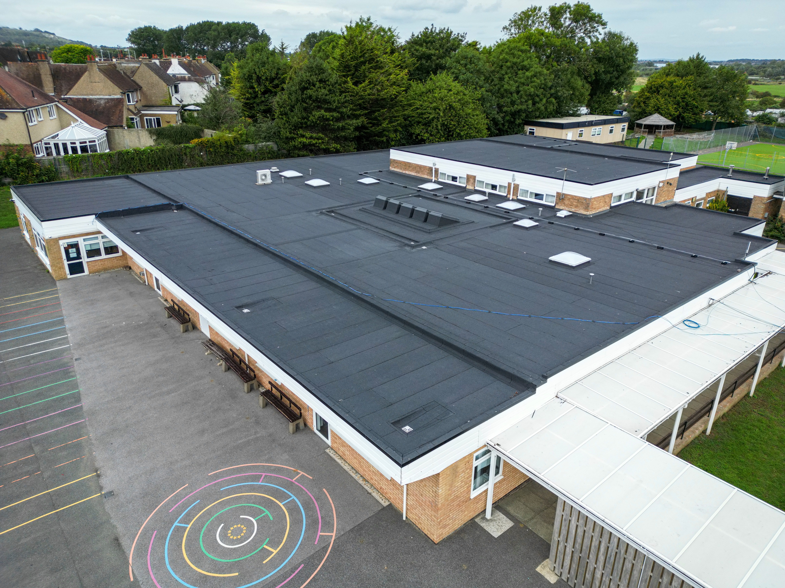 Sussex Asphalte were recently appointed to renew more than 1600m² of failing roof coverings at St Thomas A Becket Catholic Primary School in Eastbourne. Following a detailed roof inspection, including core sample analysis, Sussex Asphalte were able to work closely with our client (Morgan Carn if you want to include them) to establish a suitable solution to prevent further water ingress and provide peace of mind to the end user.