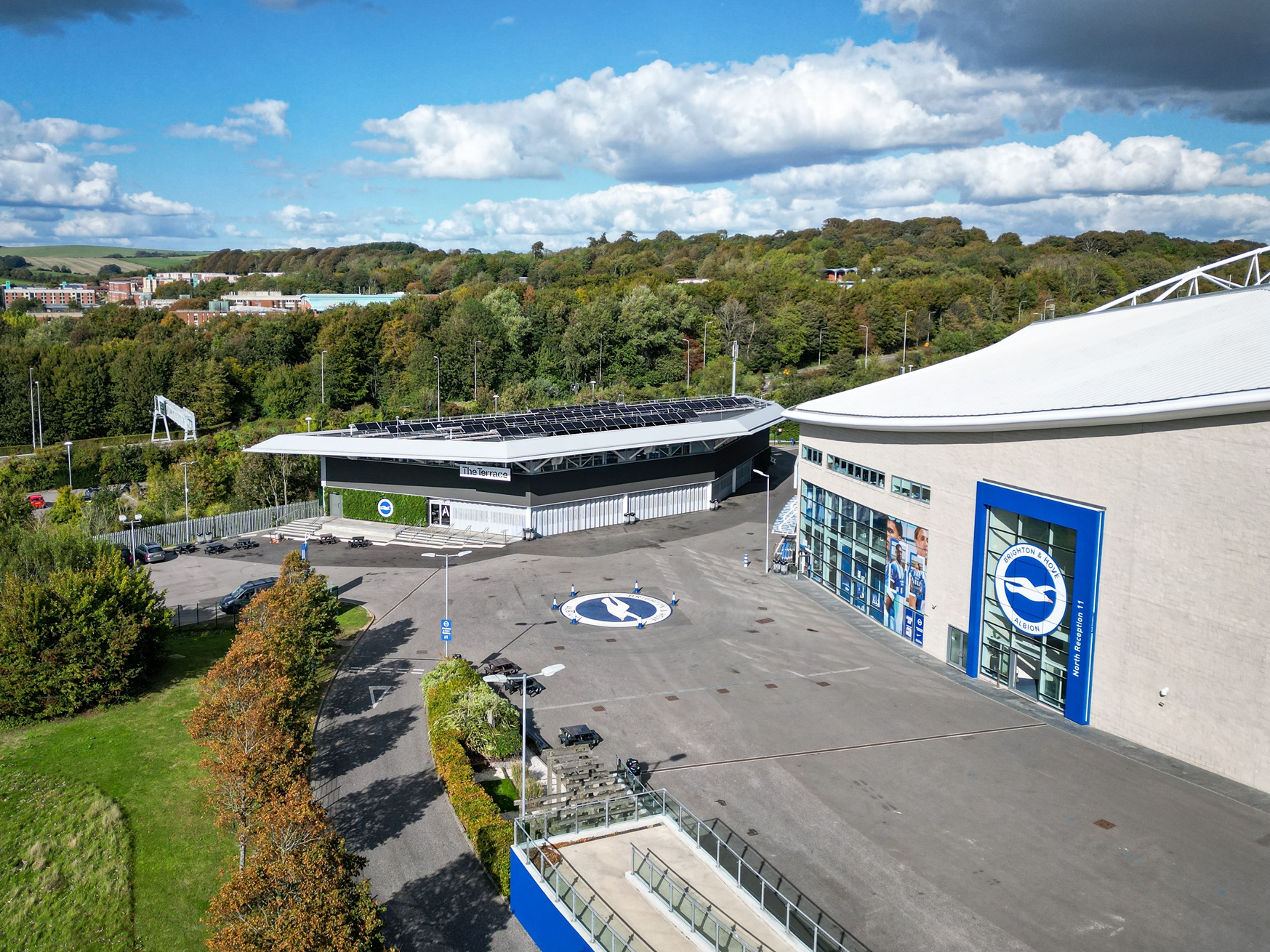 Sussex Asphalte were proud to be involved in the high-profile development of the new Fan Zone at the American Express Community Stadium (AMEX), home to Brighton & Hove Albion FC. The project forms part of the club’s wider commitment to improving the matchday experience for supporters, providing a dynamic new space for fans to gather pre- and post-game. Sussex Asphalte were tasked with the supply and installation of a robust, high-performance roofing system to protect and enhance the structure of the new Fan Zone. The project also involved the supply & installation of custom rooflights as well as the design and installation of a bespoke PPC metal fascia system to the roof perimeter, which was expertly delivered by our colleagues at Kingsley Industrial Metals. Designed to endure year-round exposure to the elements while maintaining a clean and modern aesthetic, the roof plays a key role in the overall functionality of the space.